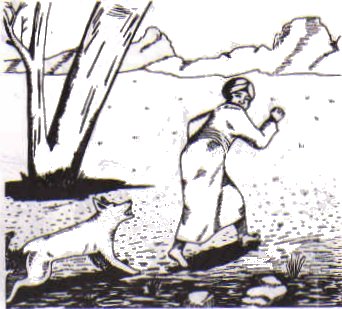 | Soudain nous sommes attaqués par un chien et un gardien de la propriété. J'ai été mordu méchamment pour être entré dans la propriété sans permission. Par la suite j'ai atteint le bon chemin. J'étais vraiment en mauvais état Abou Lahaw qui avait échappé à l'attaque du chien riait et se réjouissait de me voir pleurer et d'appeler Hàdi à l'aide. Ses graines de malheur furent plantées par toi même sur terre" cria t il. |