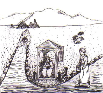 | Après quelques temps, j'ai atteint une ville lumineuse et bien aérée. J'ai demandé au garde de me débarrasser de Abou Lahaw. Il répond :"Abou Lahaw te suivra comme ton ombre, mais il ne peut entrer dans cette ville lumière". Ainsi, quand tu partiras demain, il te suivra à nouveau" |