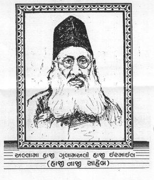 Le nom exacte de Hàdjinàdji Saheb est Hadji Goulamaly Hadji Ismael. Il est né en 1864 (A. H.1278) à Mumbai (India). Il a acquis l'instruction réligieuse auprès de Janàbe Mawlana Kadirhoussen Saheb et de Mawlana Goulamhoussen de Heydràbad. Il a consacré sa vie pour la propagation de notre réligion et aux services de notre communauté. Malgré des difficultés de toutes sortes et la situation financière aléatoire, il n'a pas perdu courage dans sa détermination. Ses madjàliss, hidayat et son comportement exemplaire ont permis de convertir des gens dans notre réligion et a ravivé la foi et la croyance de tant d'autres. Il se déplaçait, malgré des moyens difficiles, sur de grandes distances pour y délivrer ses madjàliss et y créer des madréssas. Parfois, il fallait y aller en pirogue, ou à dos d'animaux ou même à pied, et ses actes de pureté d'intention et d'humilité envers Allah (swt), impressionnaient les gens qui acceptaient avec joie de recentrer leur foi et croyance sur la bonne voie.